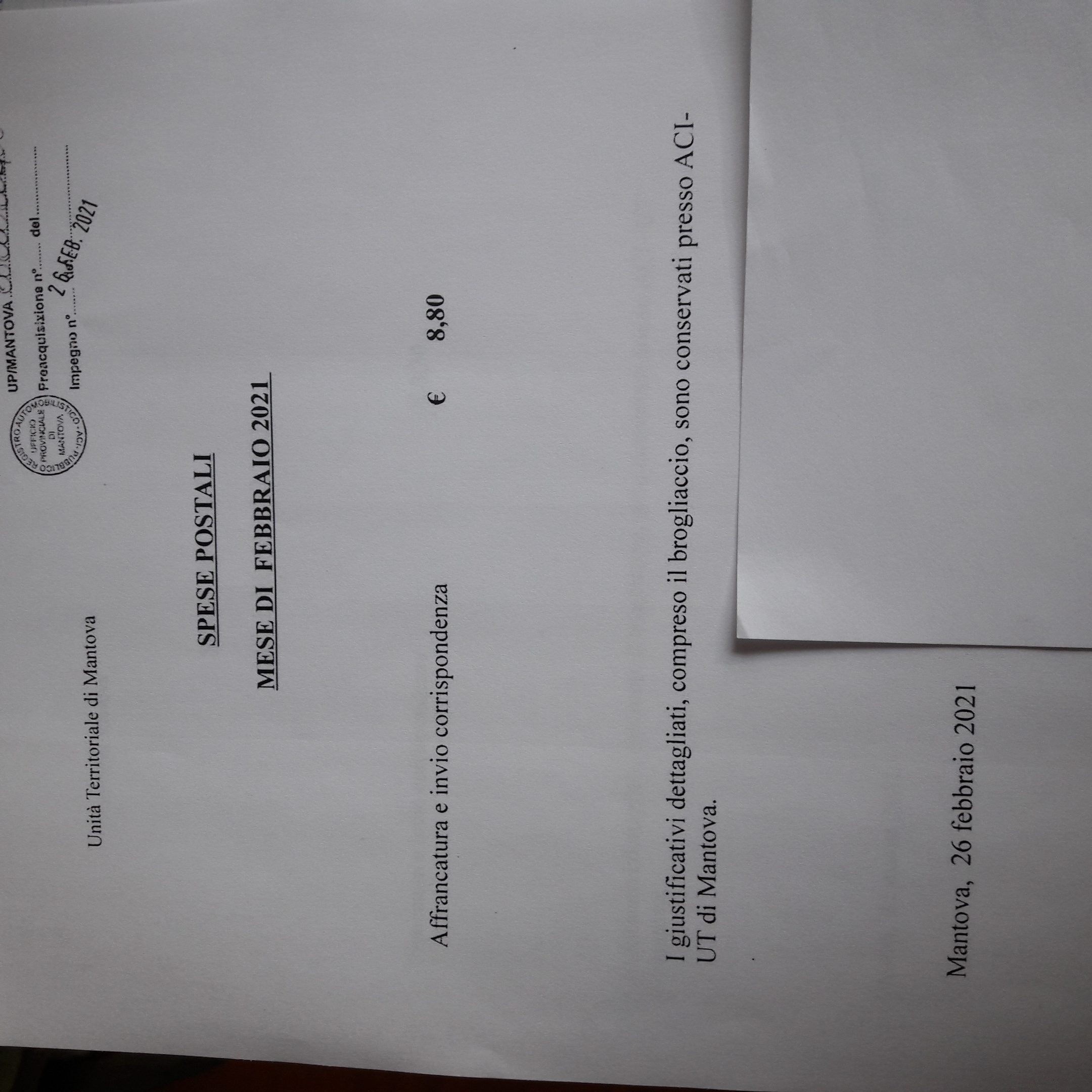 | 2021 | UT MANTOVA - SPESE POSTALI FEBBRAIO 2021 | € 8,80 |