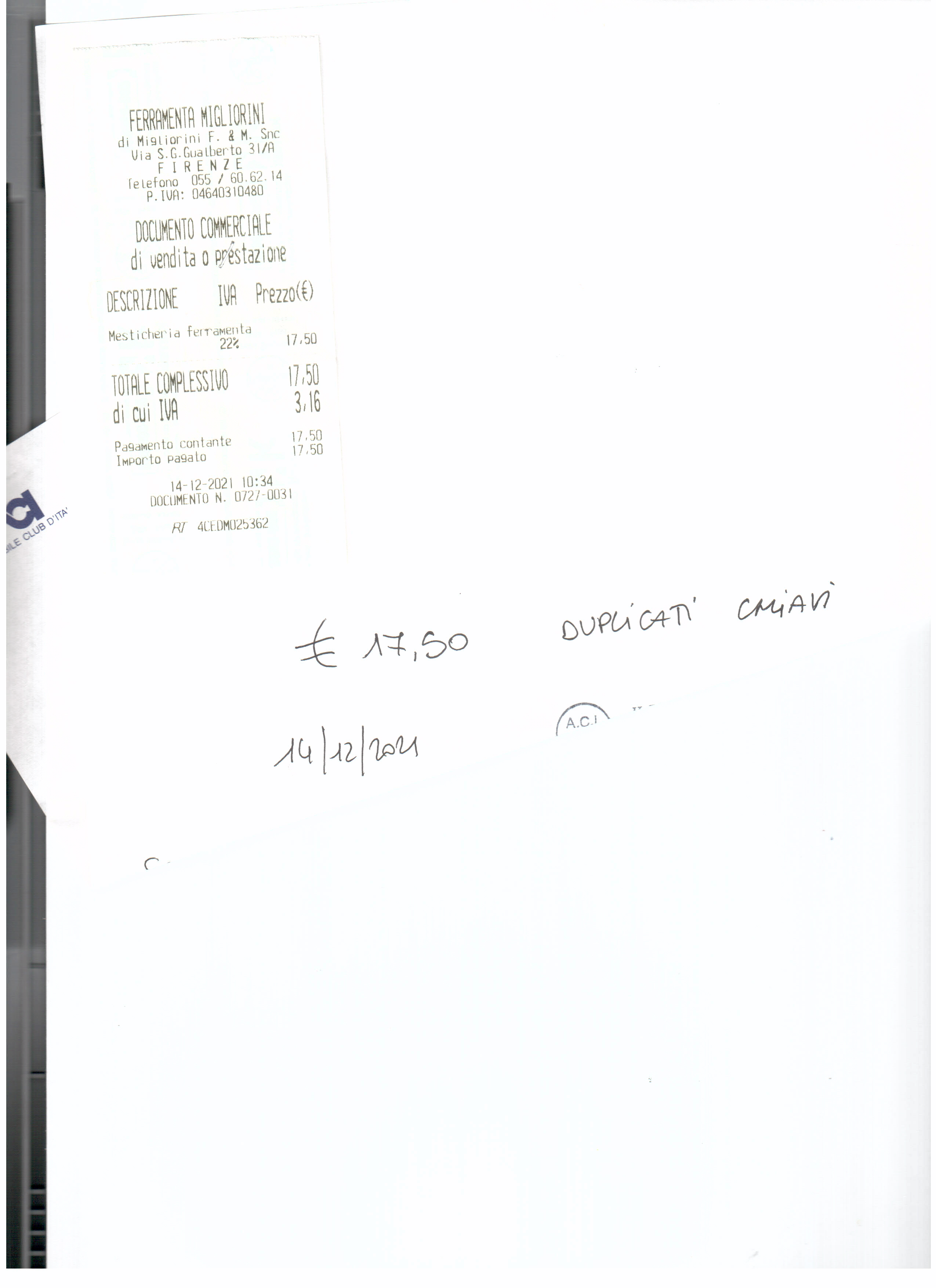 D.T. Firenze -Spese economali - Duplicato chiavi
