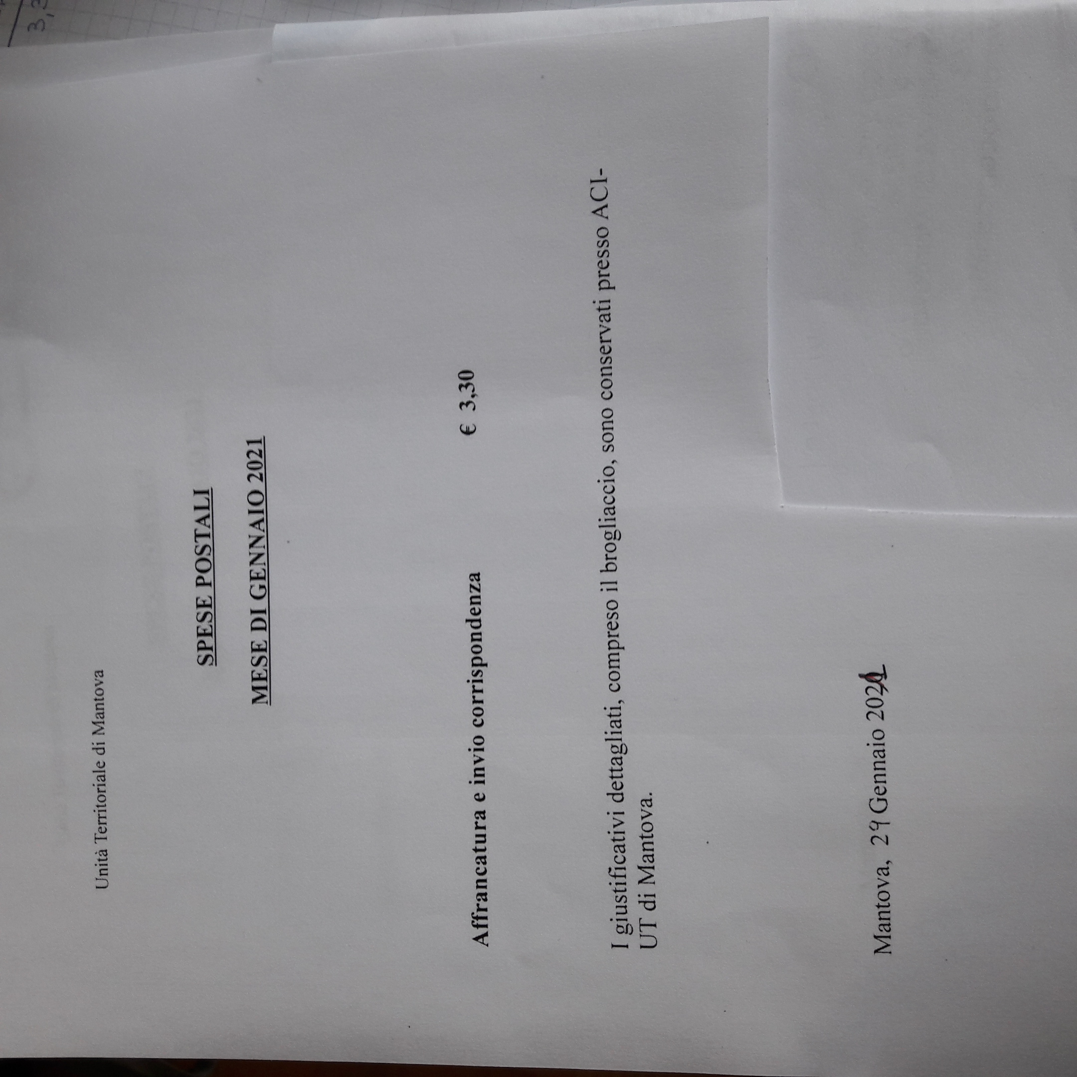 UT MANTOVA - SPESE POSTALI GENNAIO 2021