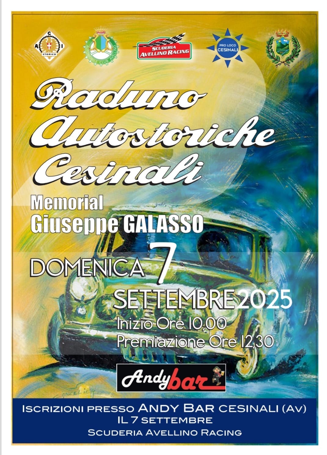 Contributo di organizzazione per eventi 2025: 3° raduno auto storiche Cesinali - 1° Raduno auto storiche Monteforte - 4° Raduno auto storiche Santo Stefano del Sole