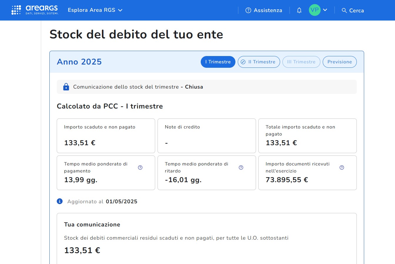 Indicatore Tempestività dei Pagamenti 1° Trimestre 2025 - PCC