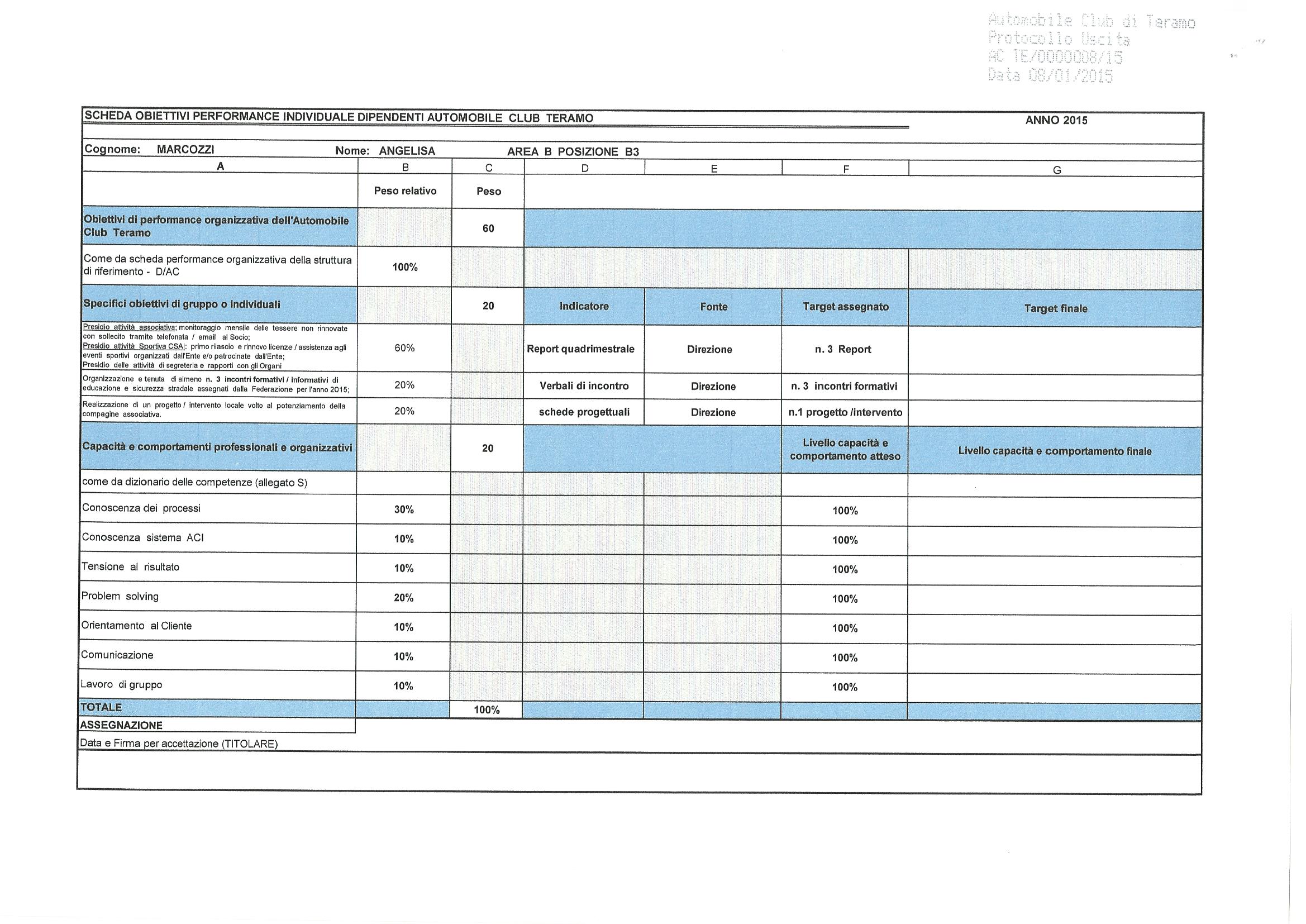 - Scheda Obiettivi Performance Individuale Dipendenti Automobile Club Teramo - Area B