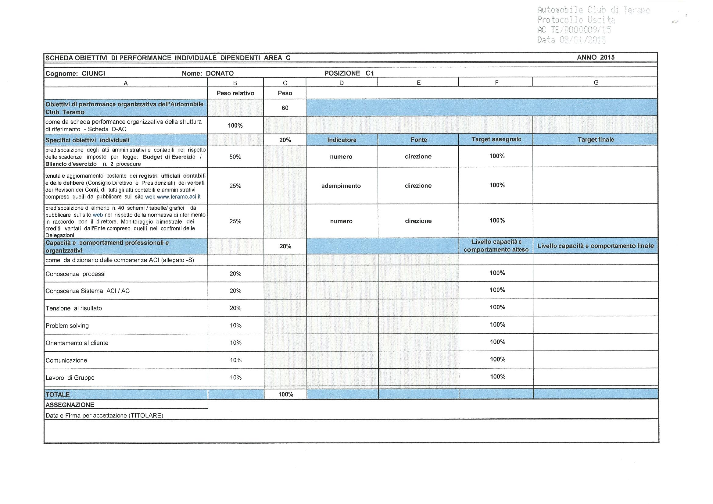- Scheda Obiettivi Performance Individuale Dipendenti Automobile Club Teramo - Area C